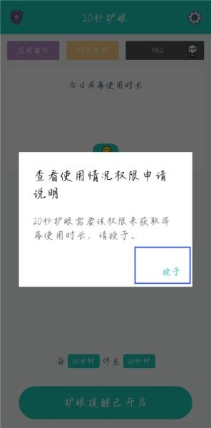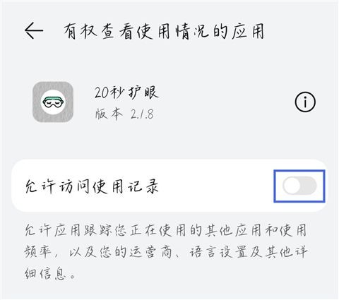 4.允许访问:在手机的权限设置中,打开允许20秒护眼App访问使用记录的选项。