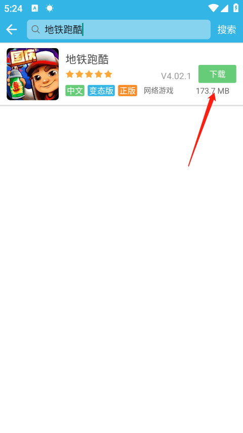 3、再然后就可以看到中文变态版的地铁跑酷游戏,只要点击有方下载就ok。