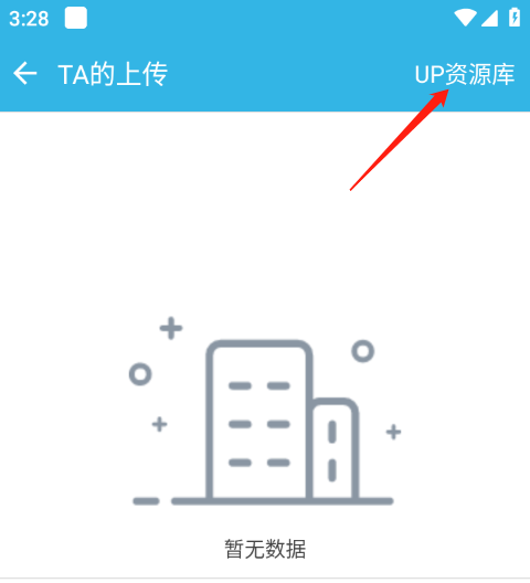 4、然后点击右上角的【up资源库】。