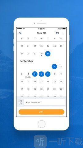 1. 可以即时查询同事复制的信息,同时这里也提供请假管理功能。