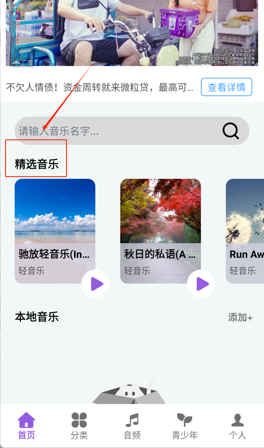 1、首次使用需要在应用商店下载安装APP,打开后无需注册即可直接使用,系统会自动加载推荐的音乐内容。整个准备过程简单快捷。