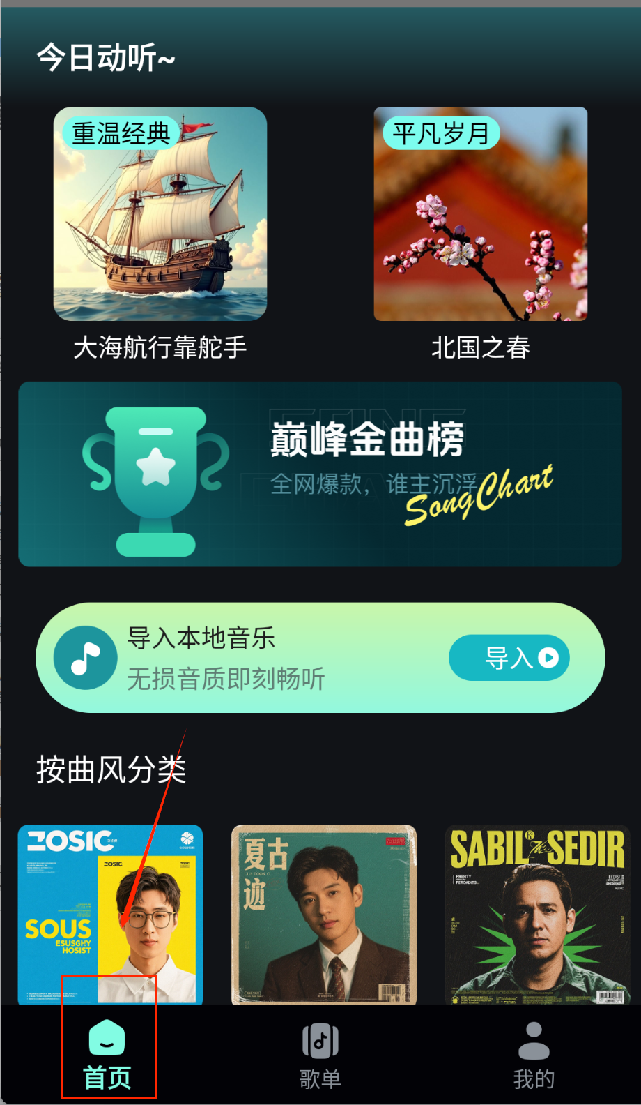 1、首次使用需要在应用商店下载安装APP,打开后无需注册即可直接使用,系统会自动加载推荐的音乐内容。整个准备过程简单快捷。