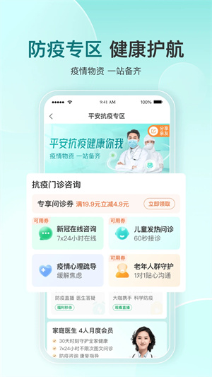 3、在线查找平安健康全球合作医疗网络,享受在线问诊、预约挂号、电话医生、直结结算、驻点导诊等高端服务,看病从此不再焦虑。