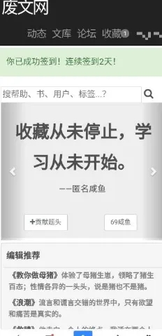 2、推荐功能,废文网app可以根据用户的历史阅读记录推荐更加贴近用户兴趣的小说。