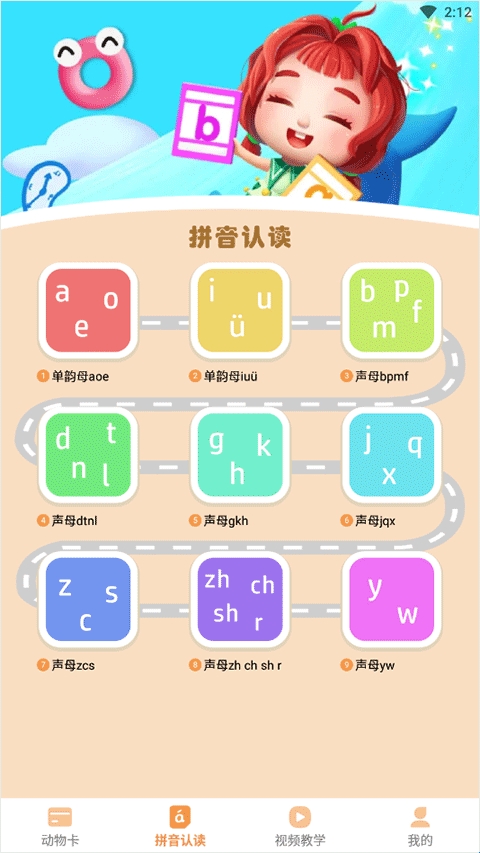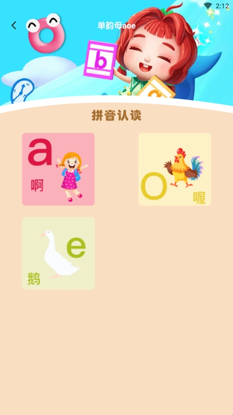 进入拼音认读界面中能够让孩子对汉字拼音进行学习