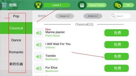 提供的曲目非常的丰富,可以让用户拥有更多的选择,让你练习自己喜欢的曲谱;