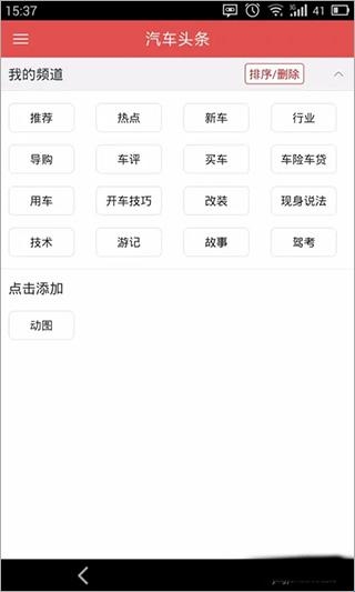 2、主页面右上角的【v】点击进去可以根据自己的需要打造只属于自己的汽车头条,减去不必要的自己不感兴趣的栏目,减少在阅读时接受的无用信息。