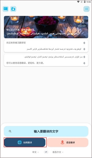 1、打开登录维汉翻译官app,点击首页【拍照翻译】;