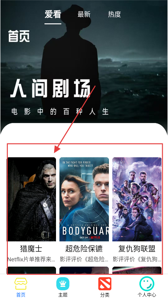 1、在首页“人间剧场”下,有【猎魔士】等影片,可挑选感兴趣的,进入查看详情或观看。