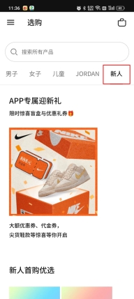 来到软件首页之后,找到新人,然后滑动到下方找到nike会员独家计划,在其中有一个会员定制鞋款,点击