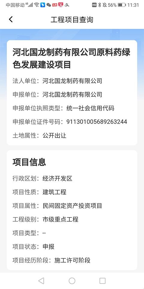 4、搜索出来后点击进入即可查看到详细的工程项目信息了