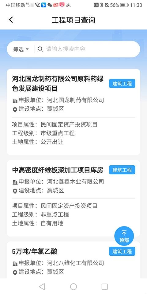 3、接着用户就可以通过页面中提供的搜索框进行搜索自己想要找的工程项目