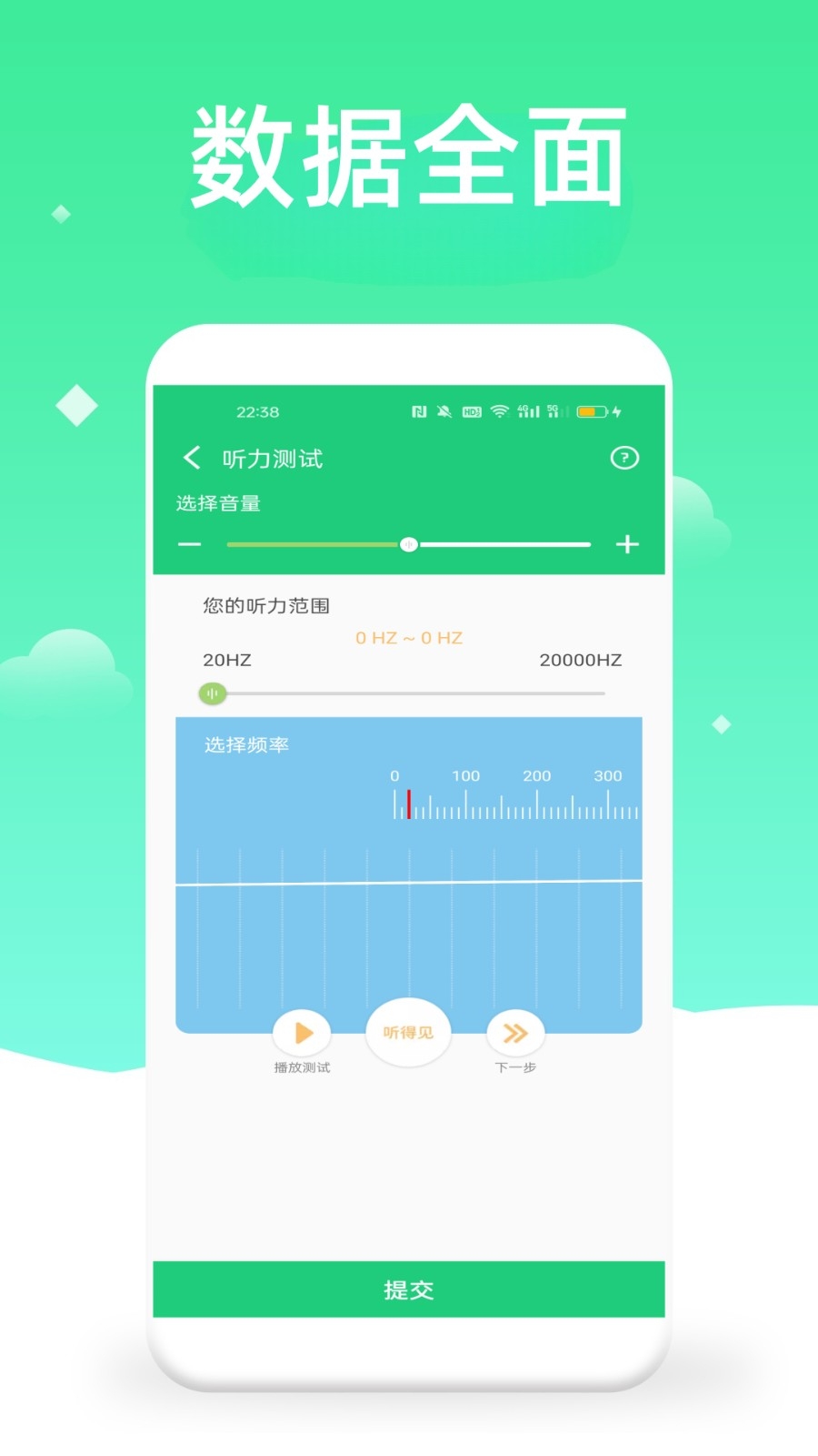 为你听力提供20HZ~20000等频率,为您更好的测试听力