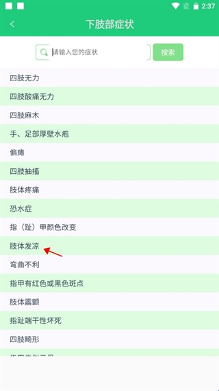 4、选择自身身体不适的症状,选好其中一个症状之后点击它。