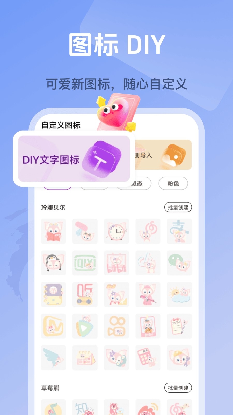 提供有自定义图标功能,用户可以自己DIY制作各种创意图表替换手机应用图标。