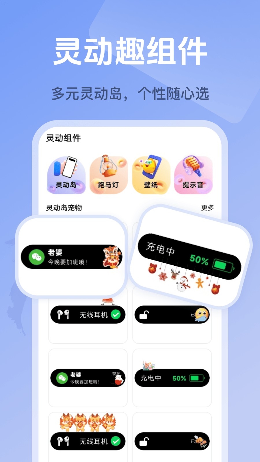 汇聚了多种个性化定制功能的软件,不仅有着海量精美的桌面小组件,还有着海量的高清壁纸、提示音、创意图标等各种个性化资源可供用户任意挑选使用,还将各种热门的桌面小组件精选推荐,让用户可以轻松查找各种热门的精美组件使用。