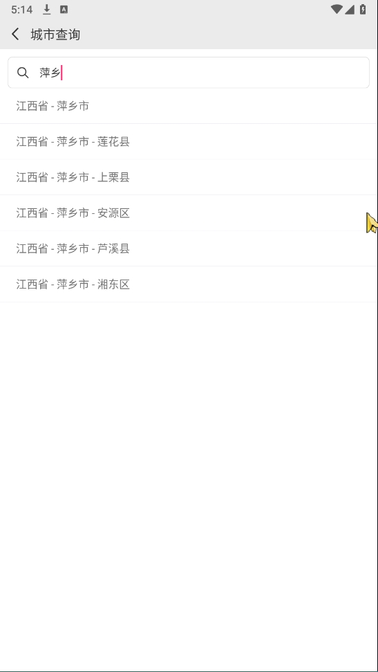3、输入你想查找的城市名字,比如:萍乡