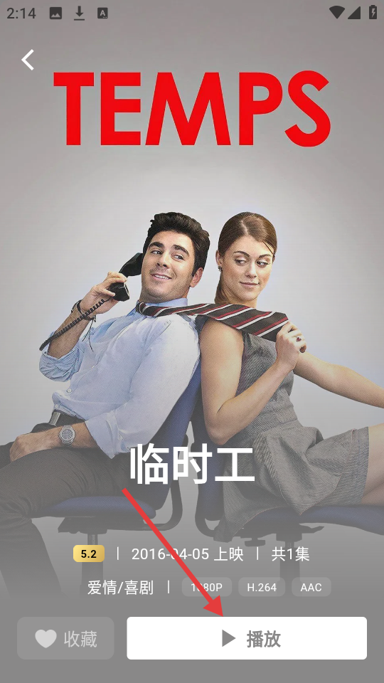 4、进入影视【临时工】详情页,可看评分、上映时间等,点【播放】,即可观看该影视,享受观影体验。