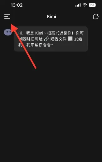1. 开启Kimi智能助手,轻点页面左上角的三条横线。