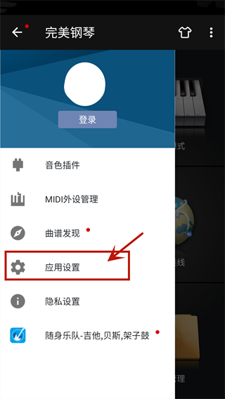 1、打开完美钢琴APP,点击页面左上角的“≡”