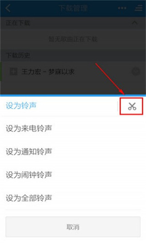 铃声下载完成后,原来的“下载”按钮就会变成“剪辑”按钮,点击此“剪辑”按钮