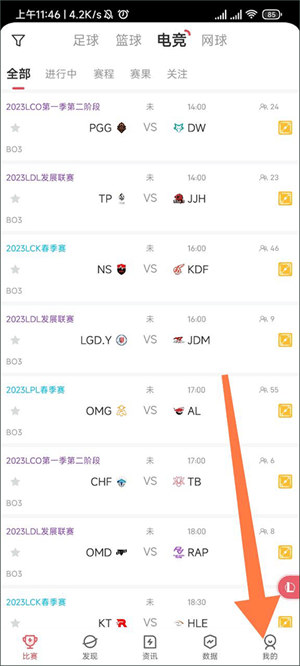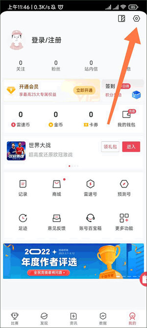 1、我们先打开雷速体育,点击【我的】进入我们的个人界面。