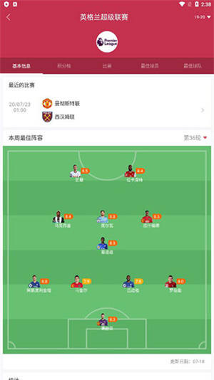 4、选择比赛进行具体赛事查询,还可查看到最佳阵容等等;