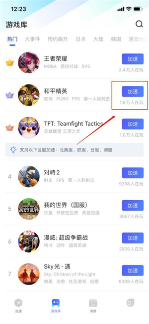 1、游戏加速,用户也通过软件对多款热门游戏进行加速,而且还可以自定义游戏加速的设置。