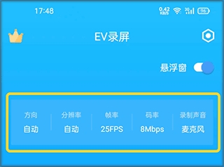 1、下载安装好EV录屏app,根据需要,可进行基础录屏设置。