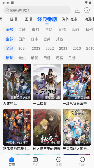 动漫屋app最新版是一款非常好用的手机追番软件,软件上的动漫资源超级丰富,无论你是爱看国漫的用户,还是喜欢看日漫的用户,或者是喜欢看动漫电影的用户,软件都能一次性满足你,让你能够尽情的沉浸在动漫的世界里,更棒的是在追番的期间还没有任何的广告弹窗哦!软件上的动漫资源都进行了详细的分类,通过分类用户能够快速筛选出自己感兴趣的动漫番剧,同时软件也加入了搜索功能,使用户可以直接搜索出自己知道名称的动漫番剧。另外,动漫屋app最新版内置了周期区域,在周期区域中用户能够清楚知道这个星期的每一天会更新哪些动漫番剧,使自己的追番之旅不会慢人一步。