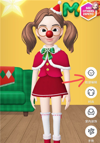 虽然是虚拟人物,但是和朋友出去玩拍照肯定是要打扮的美美的。在游戏主界面点击脸部编辑。