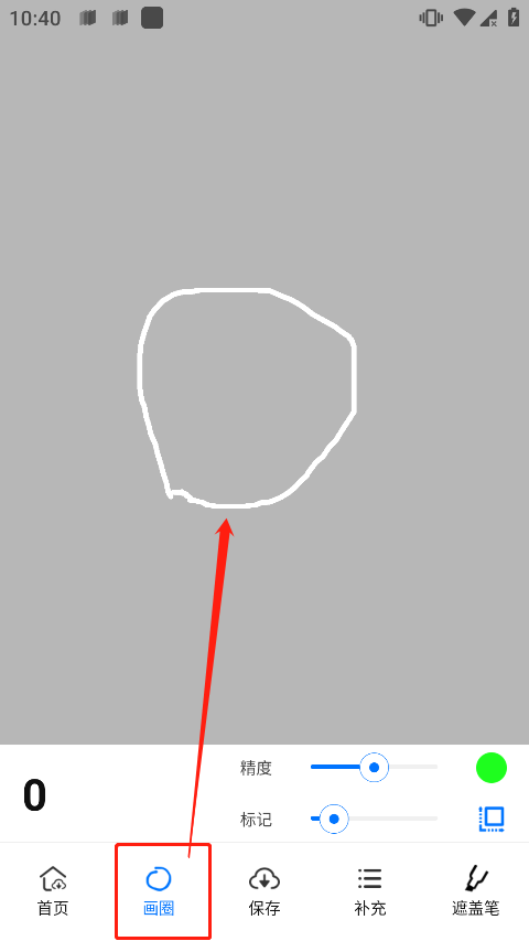 于识别界面里,点击“画圈”,在图片上截取目标物品的计数范围。