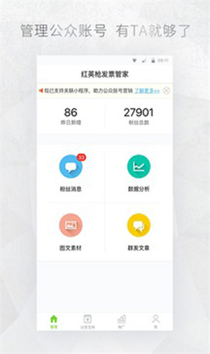 1、消息管理:消息提醒、回复和群发,新粉丝48小时任意互聊。