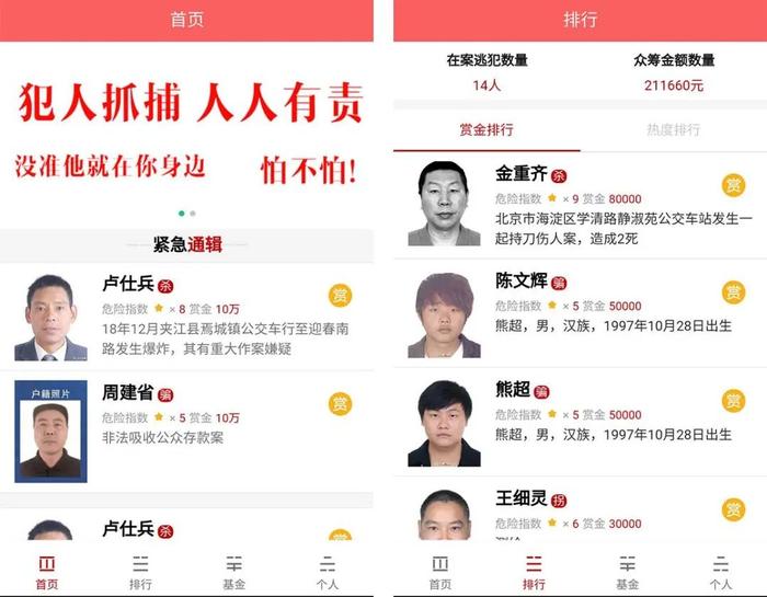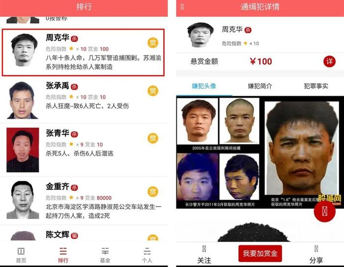 再看到 100 元的悬赏金额,我确认这个应用一定是在逗我。事实上,当年警方为举报人提供的奖励是 10 万。