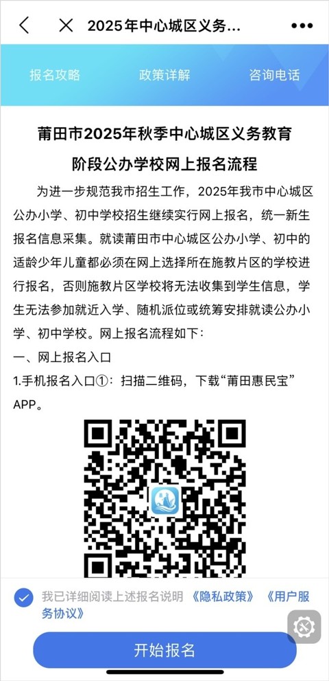 【莆田惠民宝App中小学报名流程:】