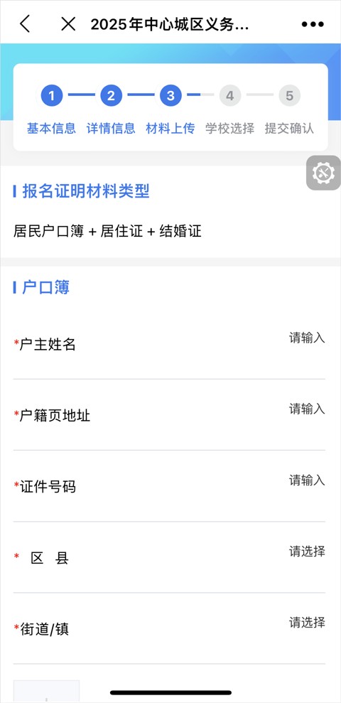 6.填写户口本信息与上传材料:按要求手动填写户口本信息,并上传所选的证明材料。
