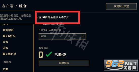 5、最后,还需要打开想要关闭战绩的游戏设置,在其中取消“ 将我的生涯设为不公 开 ”即可。