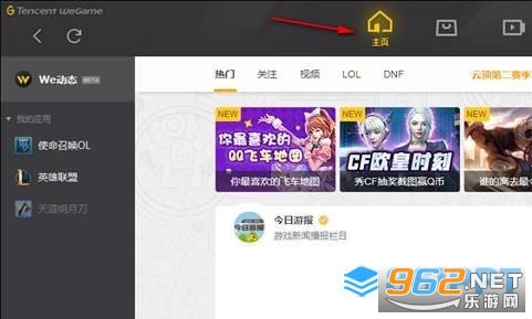 1、打开Wegame,点击顶部主页;