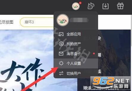 2、接着打开下拉菜单的“ 个人设置 ”选项。