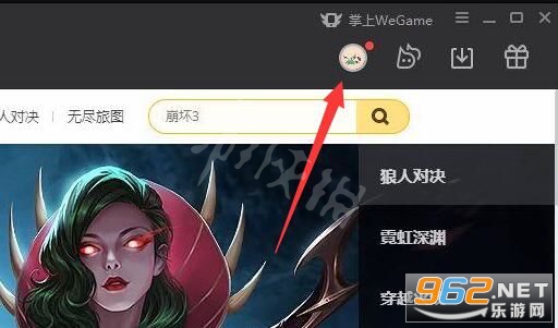 1、首先打开wegame并登录,然后 点击 右上角的“ 头 像 ”