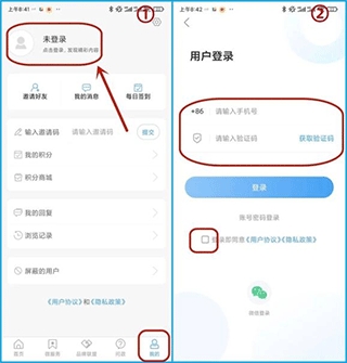 1、点击右下角“我的”进入登录页面,按步骤输入用户信息,输入“邀请码”,完成下载安装注册登录。