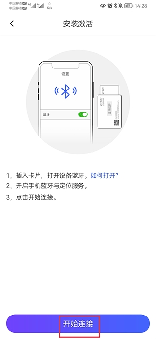 四、按照操作提示打开设备蓝牙,然后手机开始搜索连接蓝牙,即可激活成功。