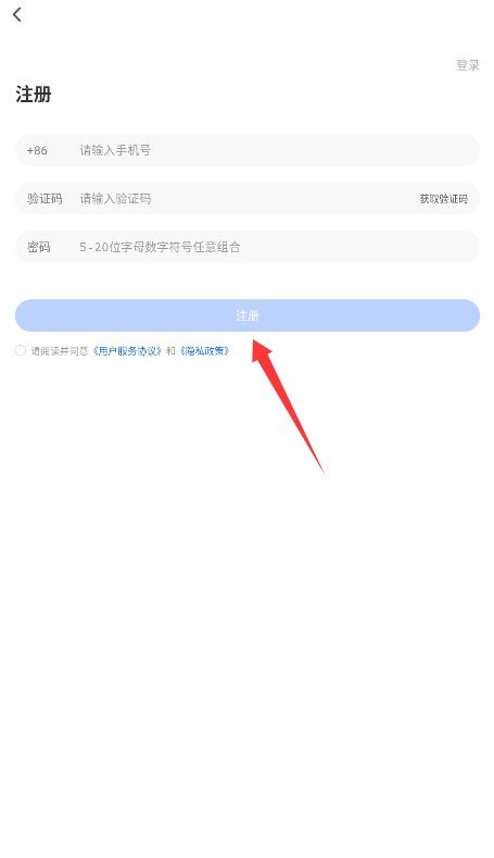 3、输入手机号获取验证码,设置密码并勾选协议后点击注册完成账号验证。