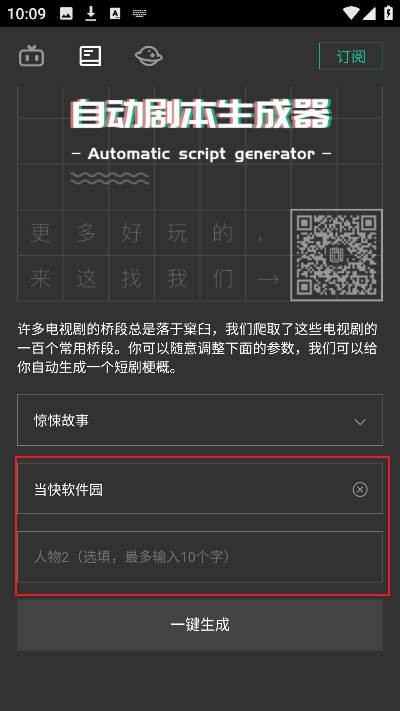 点击“一键生成”按钮,AI会根据人物关系和类型标签,自动构建剧情冲突与对话。