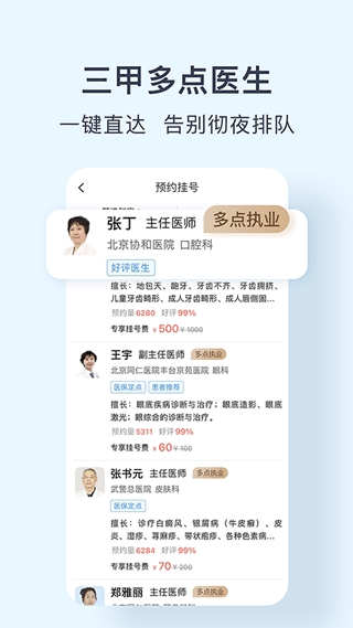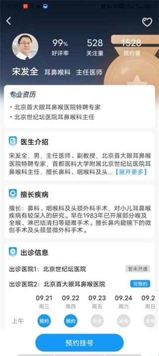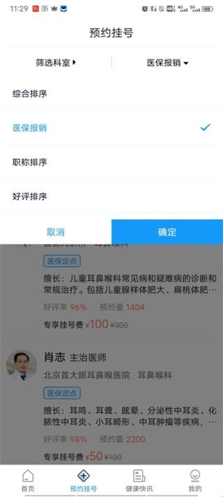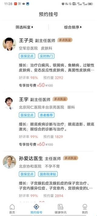 3、各种专家号、主任医师号等等好都可以在软件上提前进行预约;
