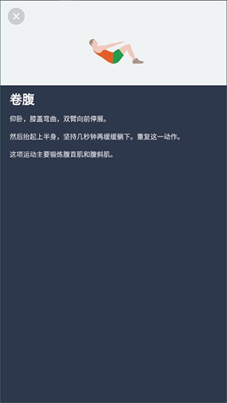 1、跟随锻炼:默认内置腹肌初级计划,让开始一次腹肌训练变得非常简单,开始后跟着虚拟健身教练训练即可。