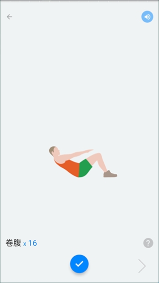 3、跟随健身时,每个动作完成后,点击“对号”按钮即可进入休息阶段然后进入下一个动作;