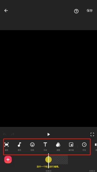 拍摄完成或导入后,进入编辑界面。需要添加新素材的时候,可点击左下角的「+」符号即可。