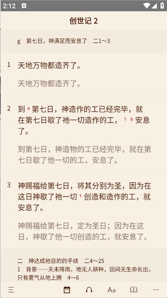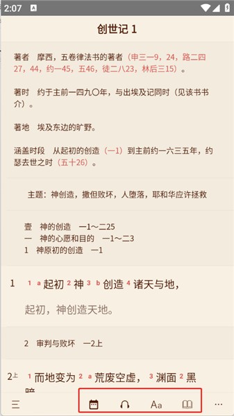 1. 完成下载与安装后,打开软件进入首页,便能看到第一章的圣经内容。