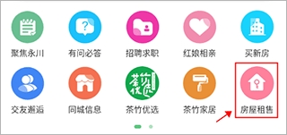 1、打开软件后,在首页点击房屋租售。